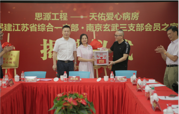 与此同时,“民建江苏省直综合一支部南京玄武三支部会员之家”也在南京天佑儿童医院成立。省政协副主席、民建江苏省委主委洪慧民,民建江苏省委专职副主委常本春,民建南京市委副主委陈定荣,民建江苏省直一支部主委杨珺,民建玄武三支部主委刘绛军,民建南京会员黄春池共同为“民建思源工程天佑爱心病房”、“民建江苏省直一支部南京玄武三支部会员之家”揭牌。